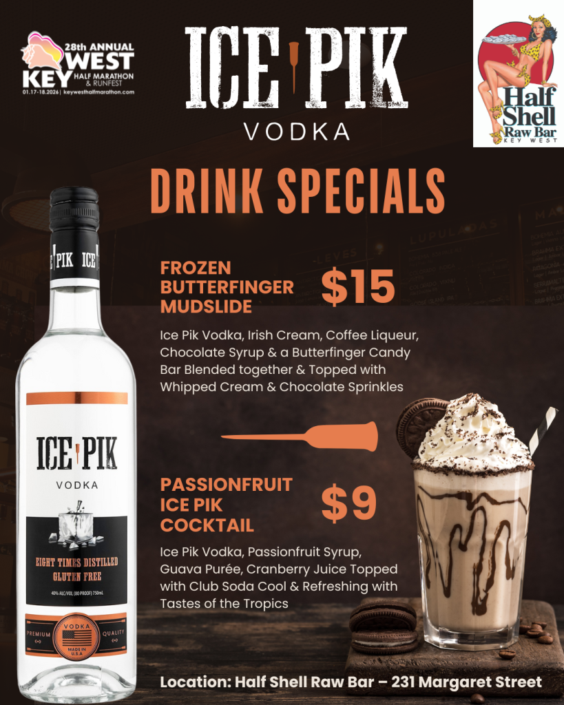 Location: Half Shell Raw Bar - ALL DAY: ICE PIK Vodka Drink Specials – Frozen Butterfinger Mudslide $15 & Passionfruit ICE PIK Vodka Cocktail $9